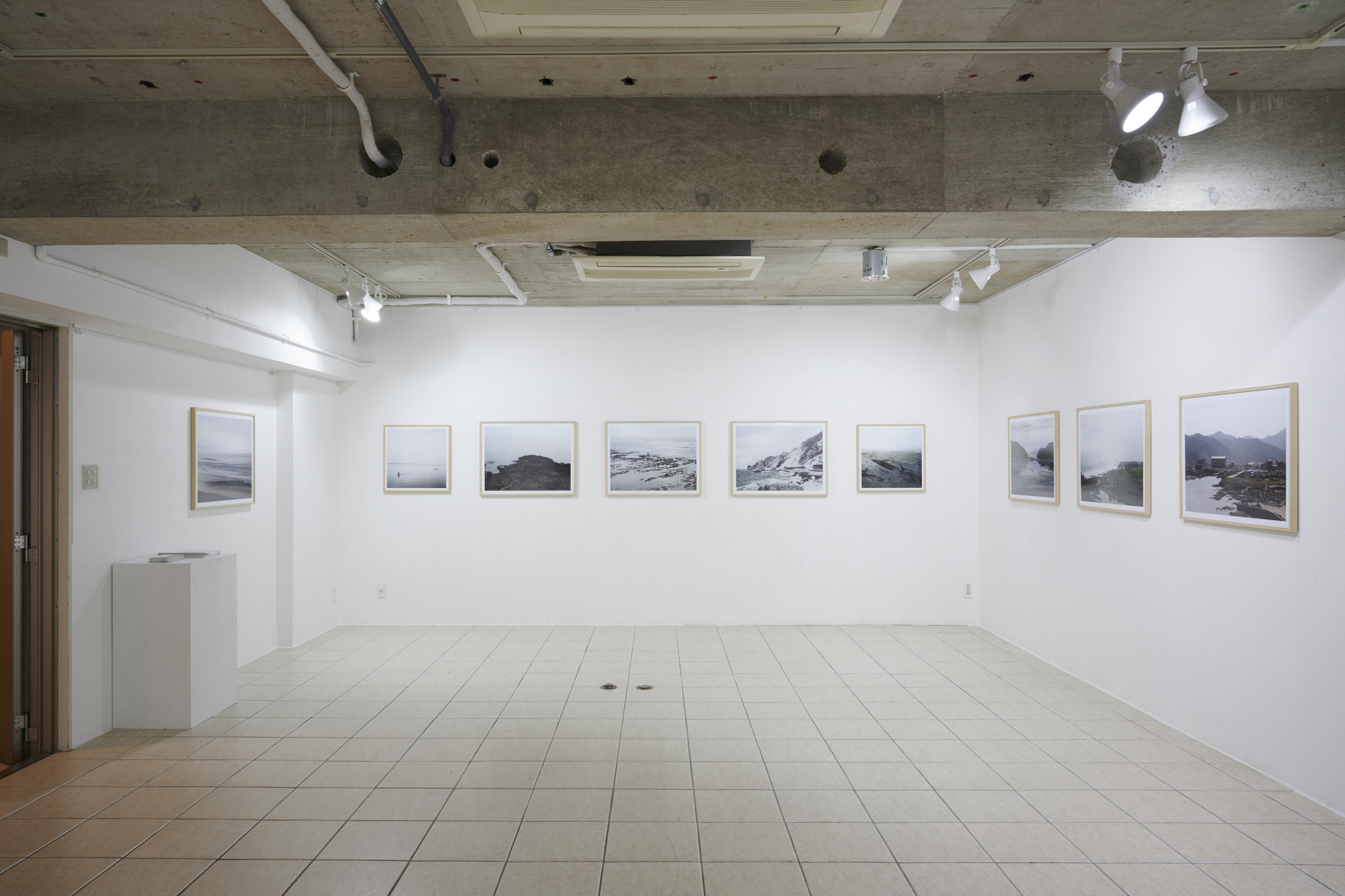 日本各地の海岸線を被写体にした「Shoreline」では、陸地が海に侵食され、混交する様子が捉えられています。寄せ来る波と寄り返す波とが出会い、人為と自然とが拮抗する渚は、相互の営みによって時代とともに刻々と変容し続けてきた場所です。笹岡は海に囲まれた日本の国土の曖昧な輪郭を浮かび上がらせると同時に、そのまなざしを山の稜線に転じることで、人間的な時間の尺度では看過されてしまうような、過去と未来の海岸線をも見出そうとしています。